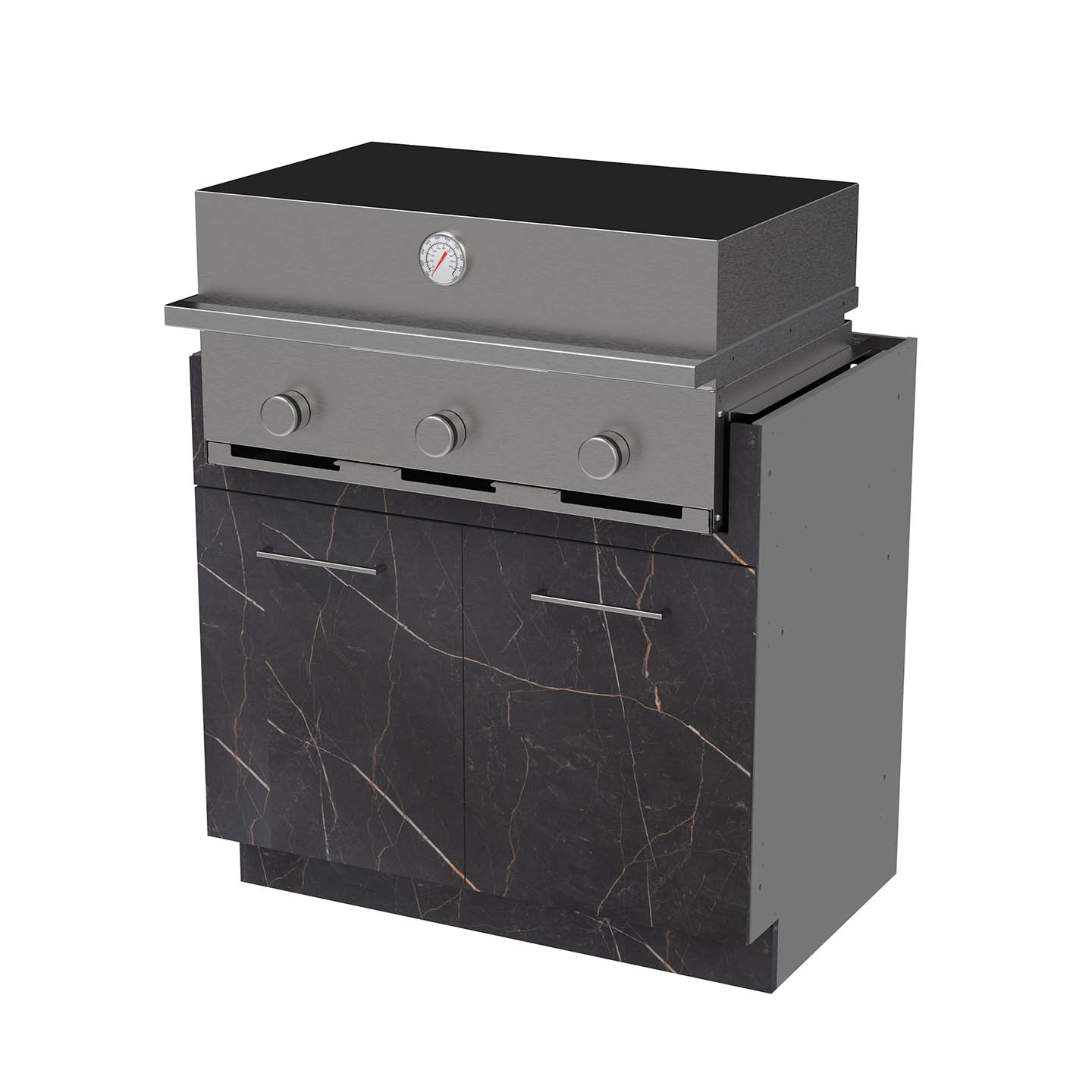 Fabricada en España en inox 304 o 316 con 3 quemadores dobles de 7.5Kw. Novedoso sistema intercambiable de parrillas para convertir tu barbacoa en plancha, horno, piedra, quemador, paellero... de manera muy sencilla. Además todas las piezas se pueden lavar en lavavajillar.