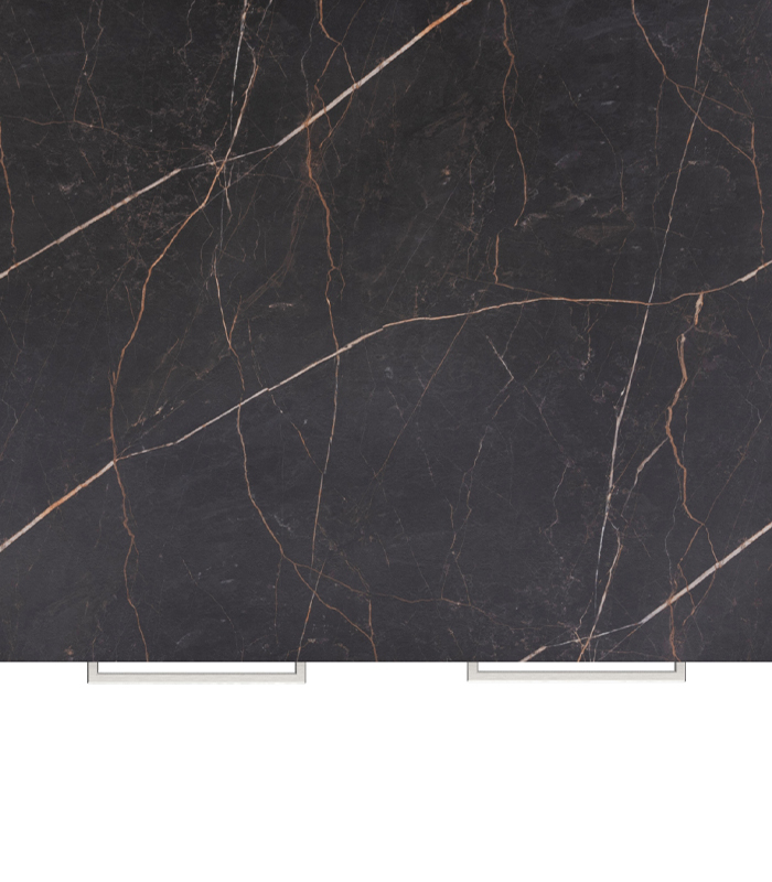 4 acabamentos minerais disponíveis, preto granito, branco ou cinzento mármore e ferrugem, em HPL de 10 mm ultra-resistente e 7 cores vivas em HDPE.